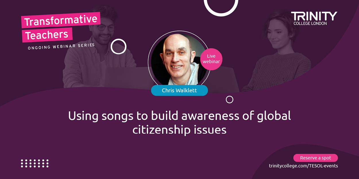 Chris Walklett is an educator, historian, ELT teacher, teacher trainer and author. He has been using music & songs in the classroom for many years dating back to his very first lesson in the mid-1990s. A lover of music both for energy and relaxation, its educational use is also something that is dear to his heart. Chris runs Tracks, which is made up of Training Tracks, both live and online bespoke teacher training course, and is also the author of the Teaching Tracks series of books. Both explore the multitudinous uses that this resource offers in the ELT, and other, classrooms.